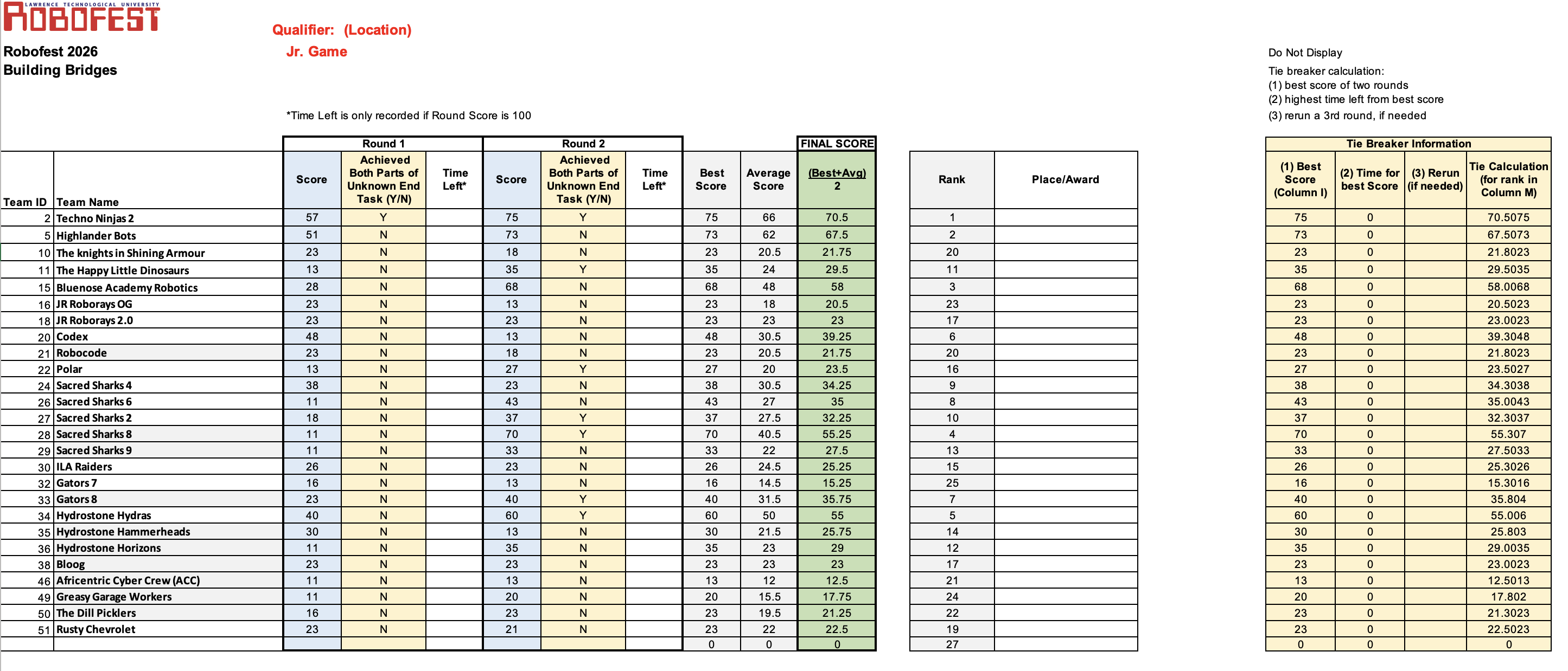 ROBOFEST Junior Division Scores
