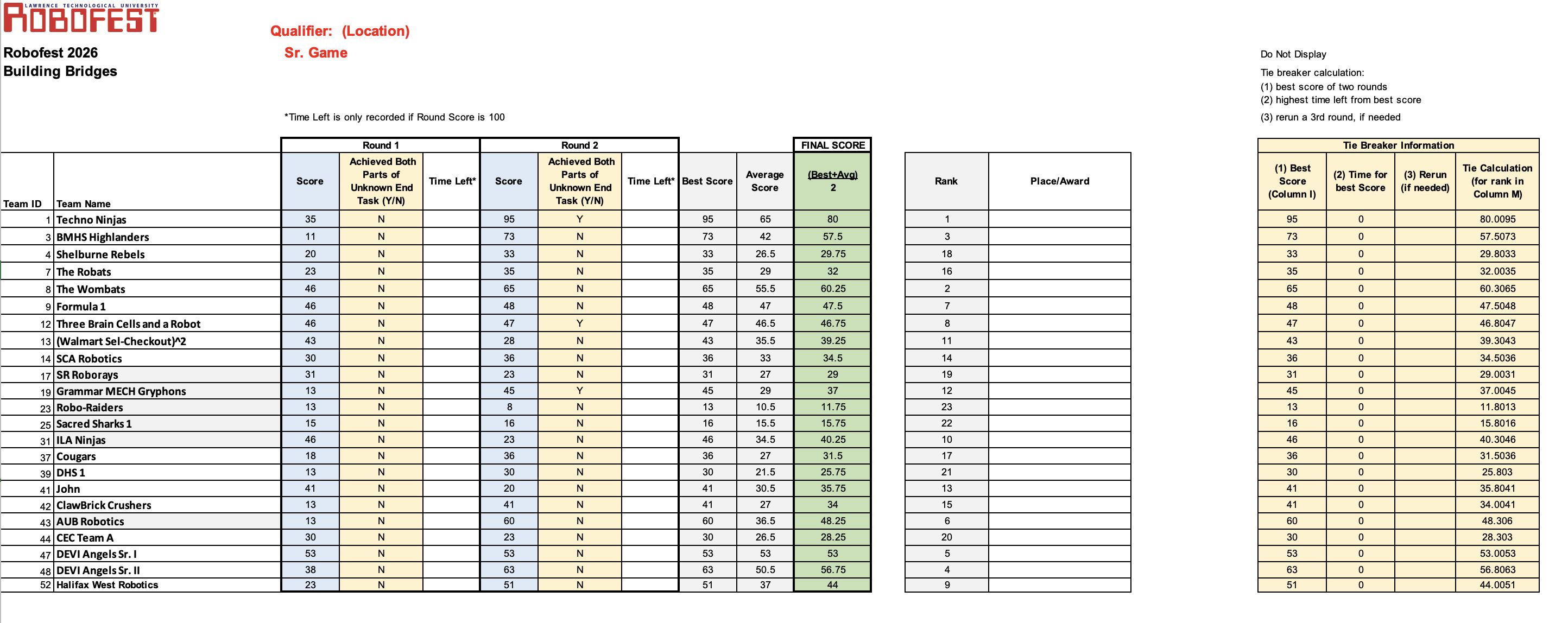 ROBOFEST Senior Division Scores